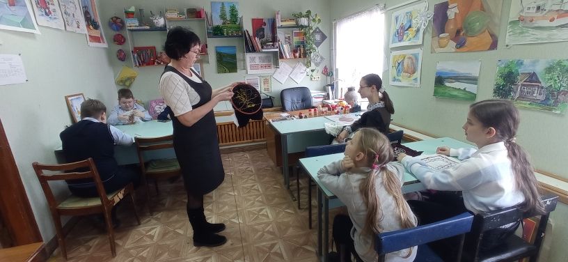 Прошёл мастер-класс по вышивке под названием «Волшебная иголка», который провела Щербинина Т. И. Известно, что чем лучше ребёнок владеет своими пальцами, тем более развиты его мышление и речь. Вышивка — это одно из самых древних и распространённых видов декоративно-прикладного творчества, которое способствует всестороннему развитию детей и раскрытию их творческого потенциала.