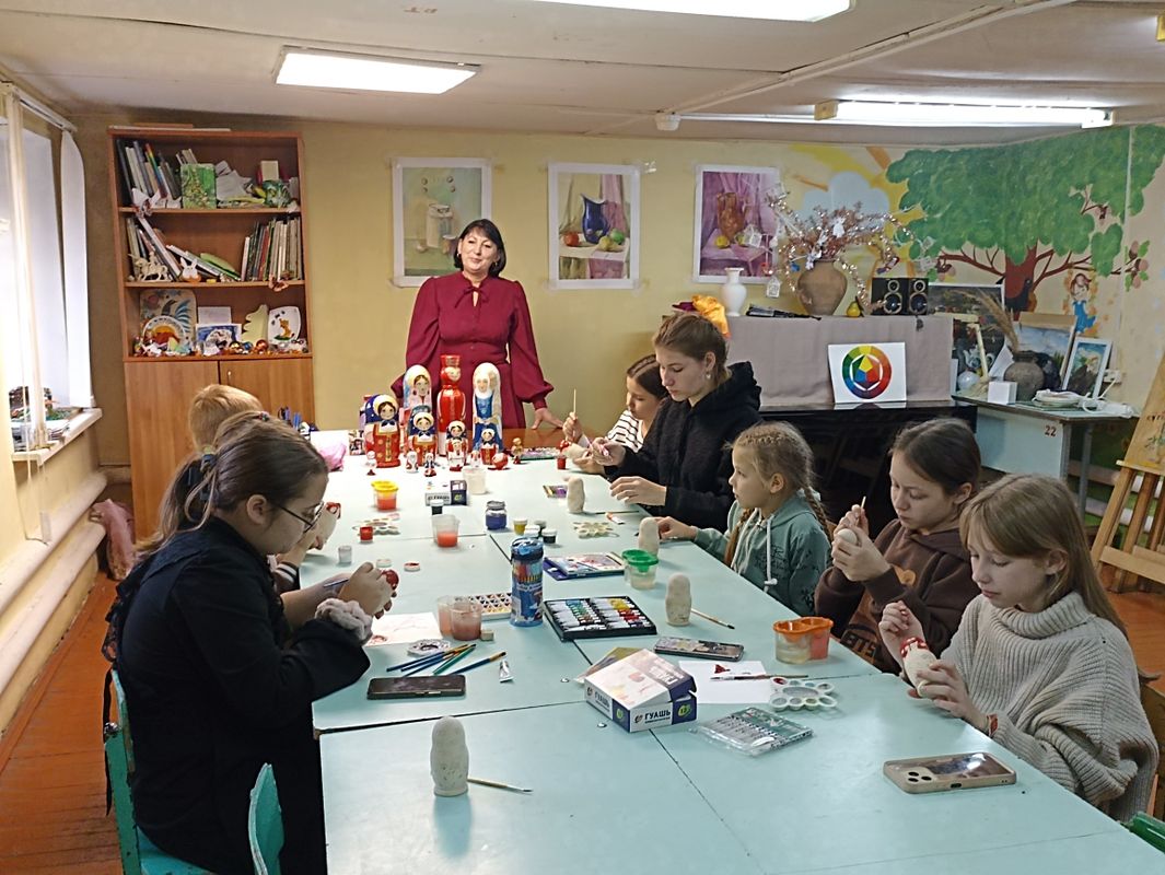 Присутствующие узнали о происхождении деревянной куклы, чем они друг от друга отличаются, о разновидностях, почему именно матрешка считается символом России, о способах росписи и роли матрешки в жизни русского народа. На занятии ребята побывали в роли художников и попробовали расписать матрешек по образцам. В качестве закрепления нового материала, ребята прошли тестирование о матрешках, где из трех вариантов выбрали верный ответ. В завершении мероприятия, преподаватель ДПИ Щербинкина Т.И., показала презентацию.