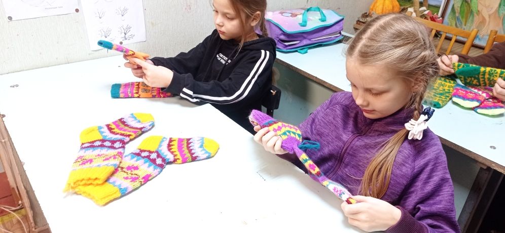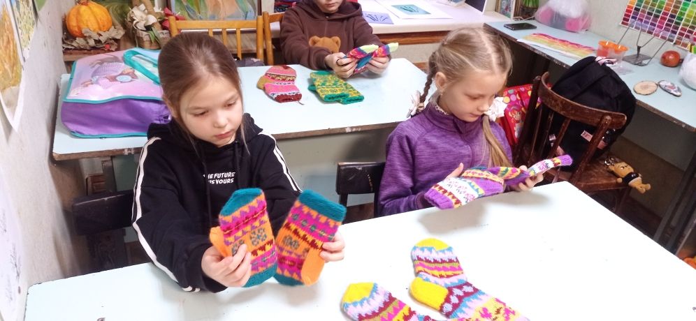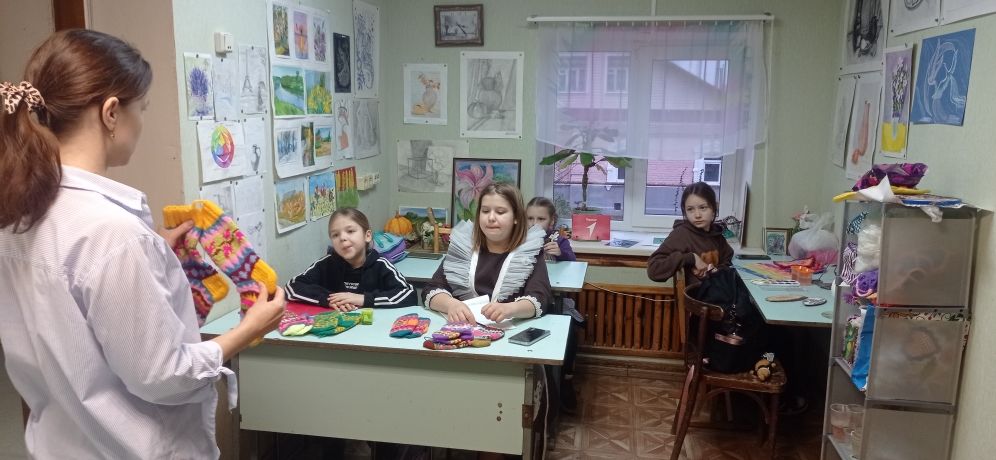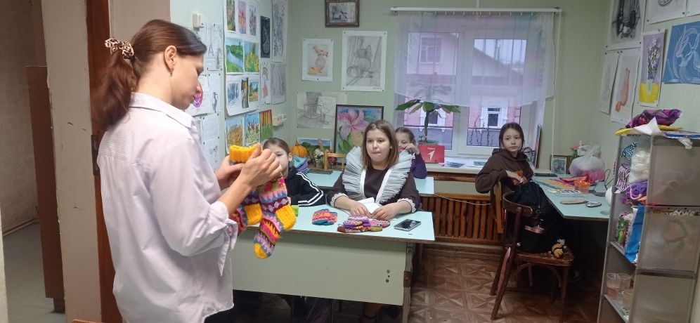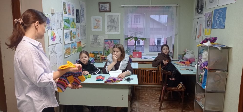 Преподаватель Ельцева А.А. рассказала историю возникновения узоров Теньгушевской семицветки и каким образом это вязание появилось в Теньгушевском районе. На мероприятии учащиеся ознакомились с особенностями вязания изделий из пряжи, узнали про палитру цветов, которая используется при вязании, каким образом вяжутся узоры на изделиях, попробуют связать образец простого узора. Практическая часть направлена на осмысление художественного языка народного искусства, а не на изготовление сувенира. С помощью презентации преподаватель показала изделия связанные мастерами и как изделия используются в национальном Теньгушевском костюме.