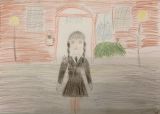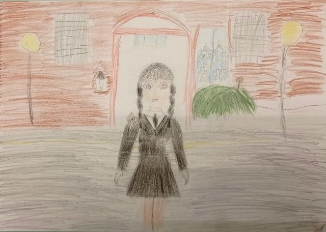 Рисунок выполнила ученица МБУ ДО "Теньгушевская ДШИ" Пономарчук Вероника, 9 лет. На рисунке изображена главная героиня сериала "Венсдей".