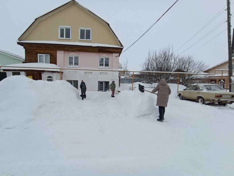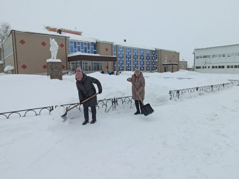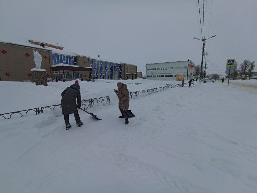 1 февраля 2026 года работники МБУ ДО "Теньгушевская ДШИ" чистили снег на парковках и тротуарах.